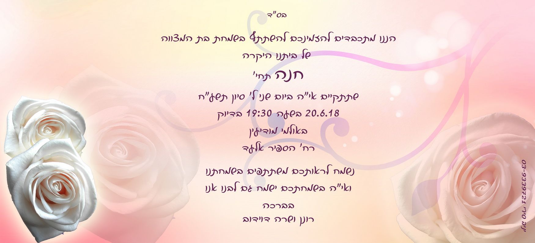 אהבתם את העיצוב? קבלו אותו, רק הוסיפו את פרטי השמחה שלכם (כאן בטופס) *הוא שדה חובה