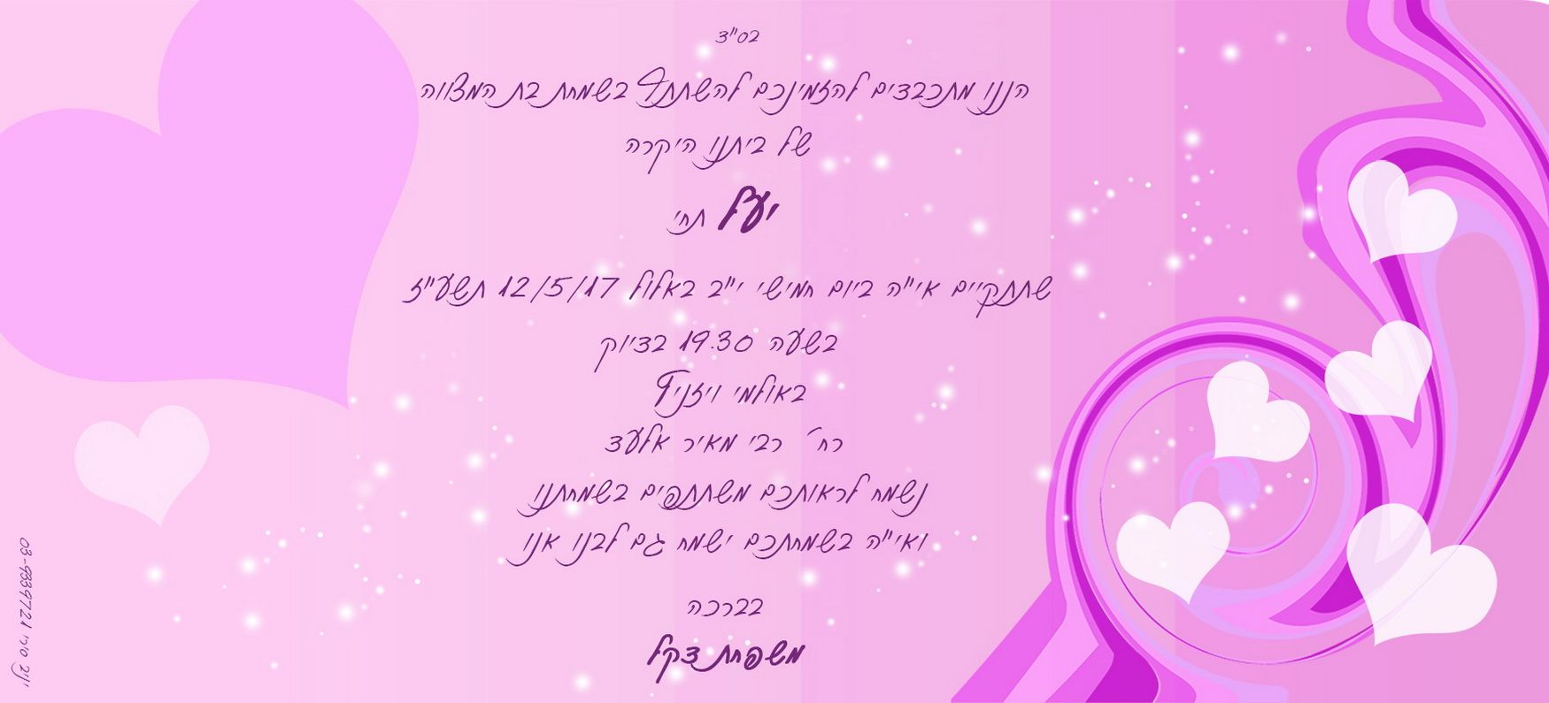 אהבתם את העיצוב? קבלו אותו, רק הוסיפו את פרטי השמחה שלכם (כאן בטופס) *הוא שדה חובה