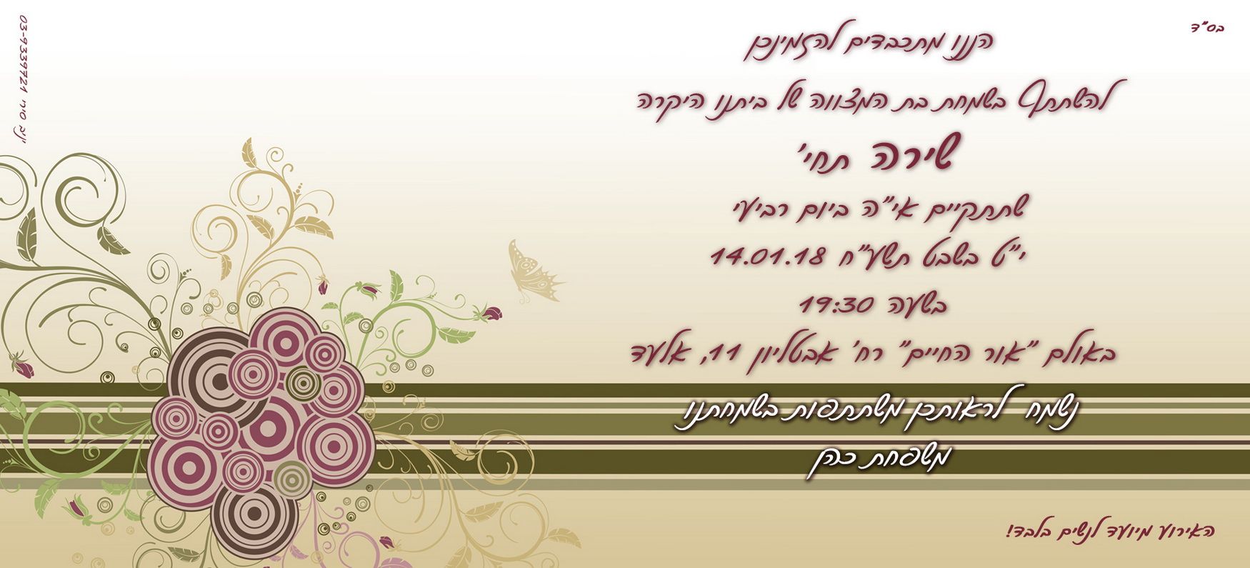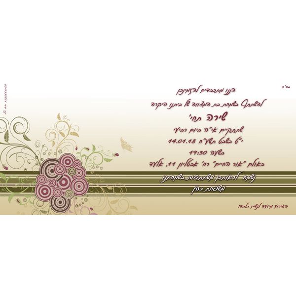 אהבתם את העיצוב? קבלו אותו, רק הוסיפו את פרטי השמחה שלכם (כאן בטופס) *הוא שדה חובה